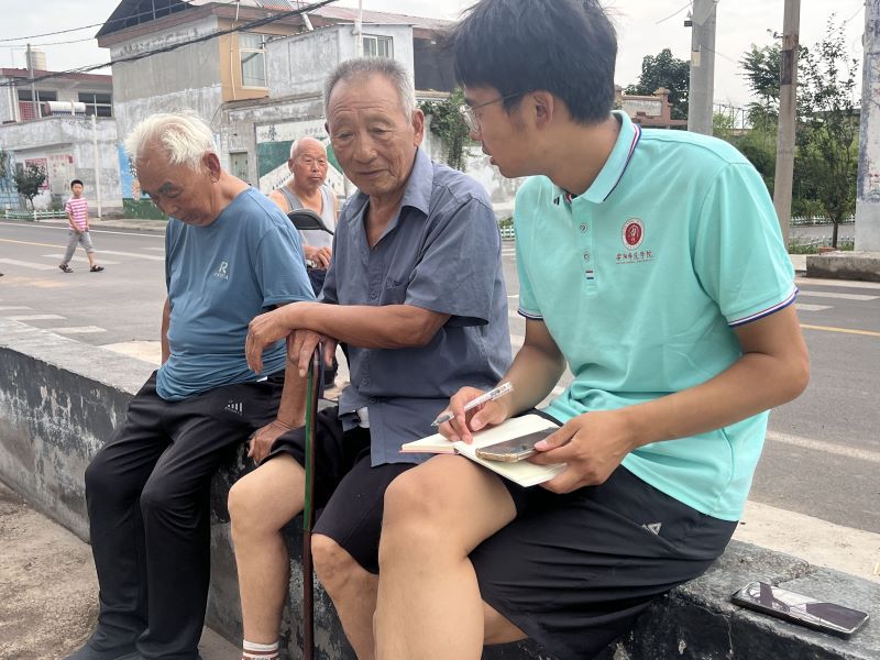 圖為岳興昌、張福存老人與問渠青訪團(tuán)成員交談。通訊員郝卓凡攝