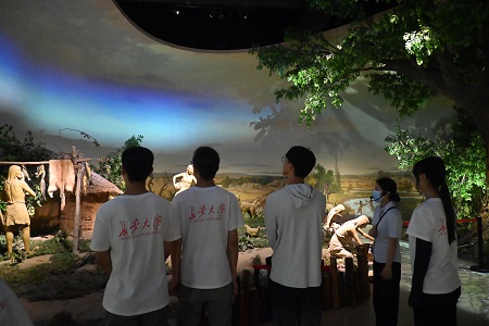 圖為講解員為實踐隊員講解遠古先民生活場景
