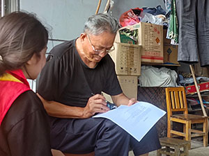 圖為實踐團面向居民開展河流調研工作并宣傳生態文明理念(胥淞予 攝)