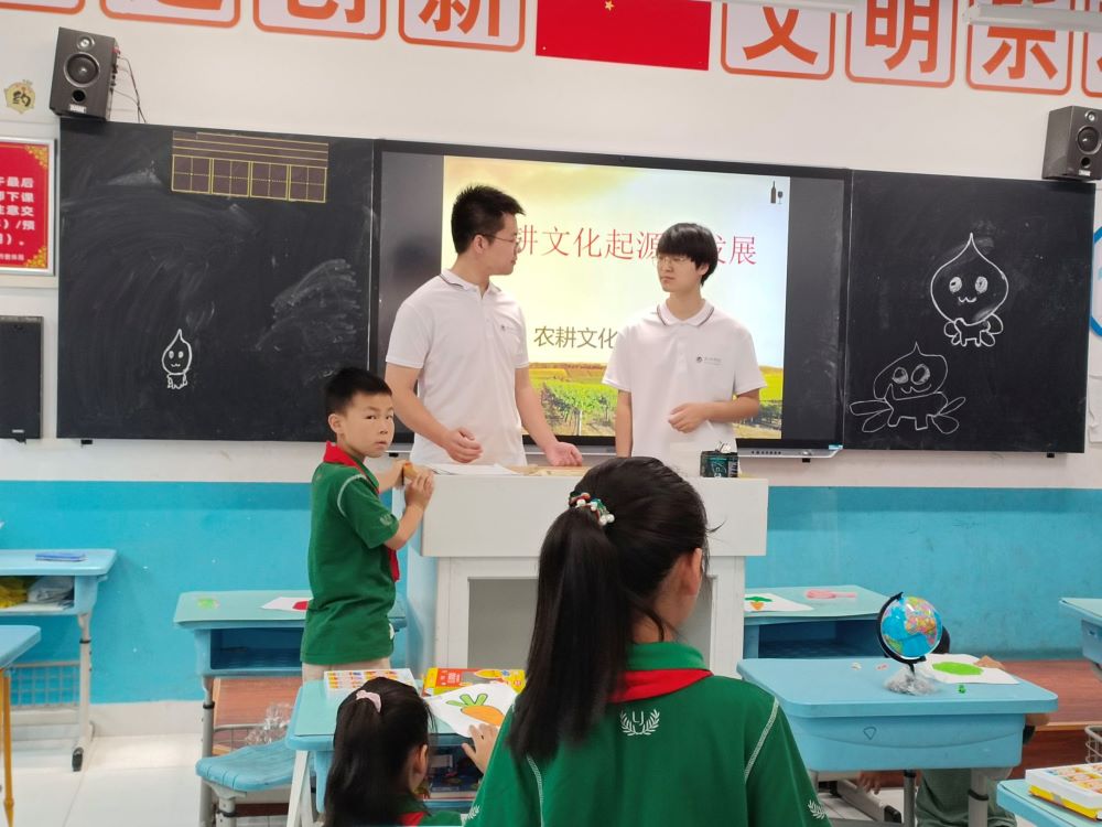 團隊成員通過PPT、視頻等多種方式,從農耕工具的演變,農耕文化的起源、發展和影響和重要性等多方面向小朋友們講解農耕文化,充分將我國優秀的傳統文化展現在小朋友的面前。小朋友們認真聽講,對于團隊成員提出的問題積極回應,有著自己的想法和見解。在這次活動中,我們向同學們介紹了新型肥料的使用方法、灌溉設備的運作原理以及病蟲害防治措施等。通過學習這些知識,可以減少不必要的浪費和污染,并有效提高土壤肥力和作物產量。例如,在玉米種植過程中,可以使用有機肥料來代替化學肥料,這不僅可以減少對土壤的傷害,還能提高玉米的品質。同時,通過科學合理地運用灌溉設備,可以更好地節約水資源,避免因為過量灌溉導致的土壤鹽堿化問題。這些先進的種植技術不僅提高了農民的種植效益,也保護了生態環境。