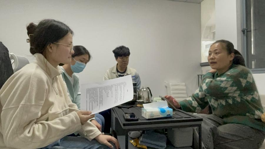 圖為團隊成員向“貳壹壹”自習室經營者進行訪談。今日大學生網通訊員 徐淑妮 攝