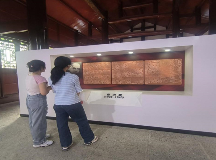 肖次瞻故居管理者正在向?qū)嵺`隊(duì)隊(duì)員講解