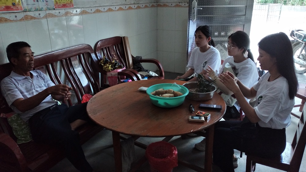 圖為實(shí)踐隊(duì)隊(duì)員在羅定市與當(dāng)?shù)卮迕襁M(jìn)行調(diào)研