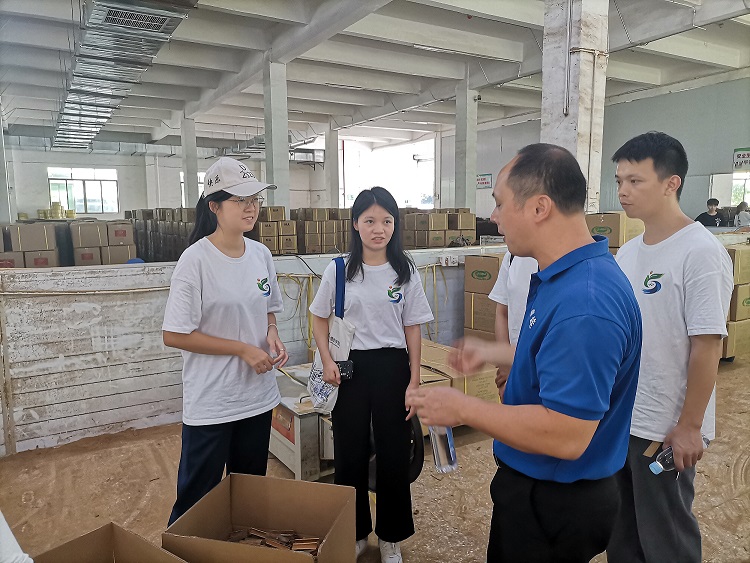 圖為羅定肉桂加工廠廠長(zhǎng)與實(shí)踐隊(duì)隊(duì)員交流