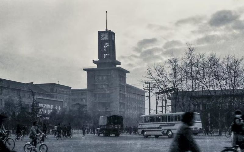 圖為上世紀(jì)80年代,天府廣場(chǎng)旁的鐘樓