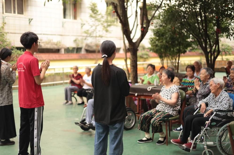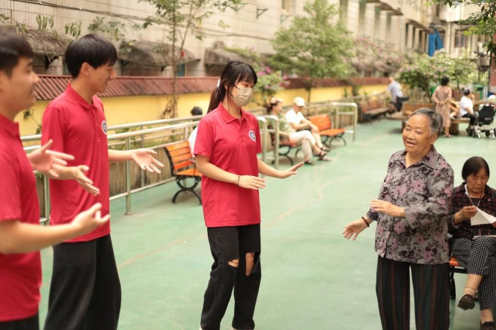 在介紹完團隊后,成員們便和老人們一起聊天,分享生活中有趣的事,聆聽老人們訴說著他們年代所發生過的事。在養老院生活的老人都是經過新中國成立的時期,他們用自己的經歷講述著中國成立以來的變化,同時也囑托著我們當今幸福生活的來之不易。傾聽著老人們的故事,實踐團成員們更加確定為中華民族偉大復興貢獻出自己的一份力量。除此以外,實踐團成員還為老人們捶背、捏肩和老人們一起唱歌,在歡聲笑語中度過了短暫而又充實的美好時光。