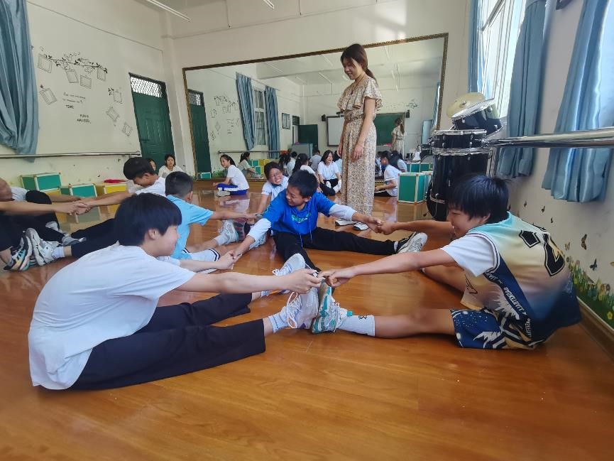 “我喜歡打籃球、跳舞、和朋友一起騎自行車……”在第一節班會課上,不少同學做自我介紹時都說到熱愛運動。此次夏令營,志愿者們也給學生們帶來了跆拳道、太極和基礎舞蹈三門體育課。“哈!““哈!” 跆拳道課上,伴隨著一聲聲擲地有聲的口令,同學們模仿著老師的樣子有模有樣的出拳踢腿;太極課上,大家分組進行熱身活動,在老師的帶領下體驗太極的柔中帶剛;舞蹈課上,有的同學積極搶占前排,有的同學雖是第一次接觸舞蹈,也敢于嘗試,感受音樂和律動結合的魅力。老師們在課堂上認真講解動作,對一些不清楚動作的同學進行個別指導,課后,老師們還組織相關同學利用課余時間排練結營儀式文藝匯演的節目,同學們主動參與,積極配合。在最終的文藝匯演上,老師和同學們都笑容洋溢,以自信飽滿的精神狀態向大家展示這幾天的排練成果,引來了陣陣歡呼和鼓掌。