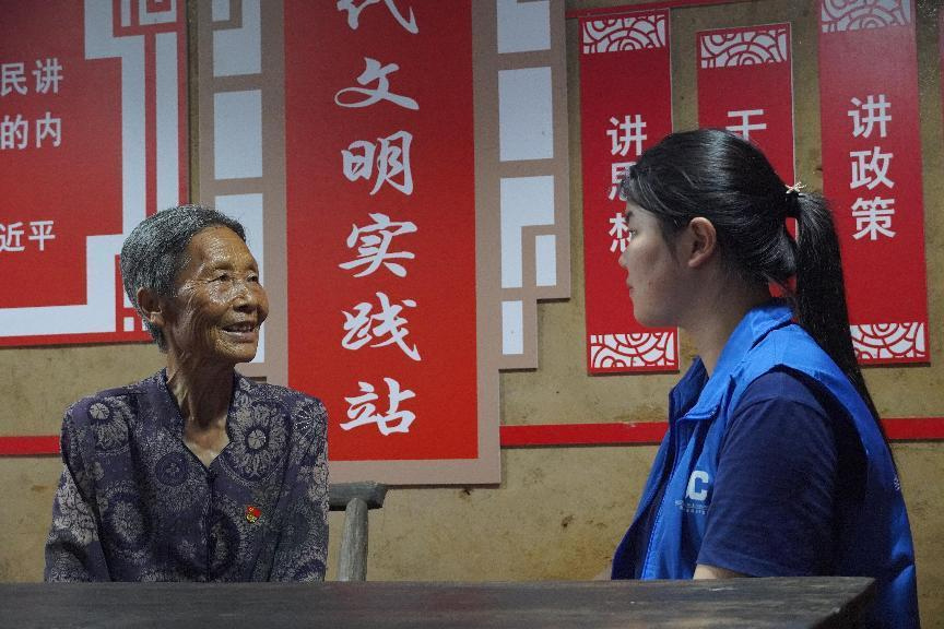 圖為實踐團隊成員采訪張愛華老人