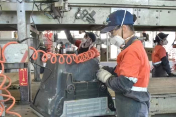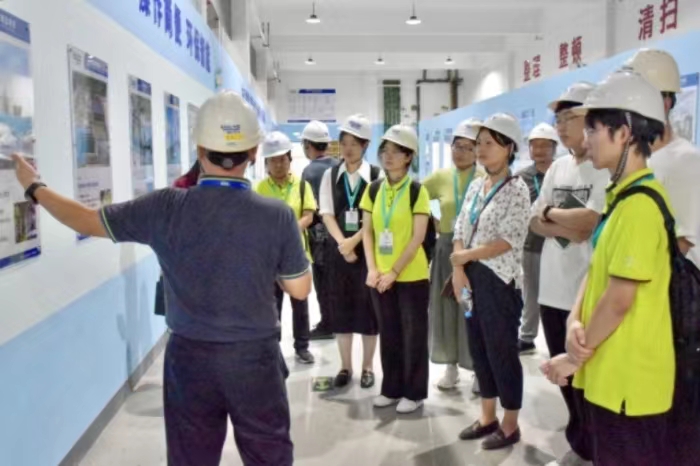 在做好安全防護后,實踐隊隊員跟隨講解員來到處理廠的工作車間,講解員介紹道,公司的流水線生產嚴格遵循各項規定,以綠色產業和低碳技術為基礎進行運作,且嚴格把控水、電和煤的使用,高效回收廢棄電器電子產品,提高廢棄物綜合利用率。