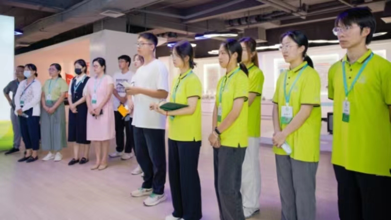 移步產業園展廳中,講解員向實踐隊隊員們揭曉了廢棄電器電子產品的“內部秘密”,破舊的外殼下是各種金屬與非金屬零配件。講解員告訴實踐隊隊員這些零配件即將迎來它們的第二次“生命”,在被拆解后,它們會依據不同材料進行分類,送至流水線進行再生利用。在賦予這些廢棄物全新形態時,不僅降低產業的碳排放量,還減輕了重金屬污染,減少了固體廢物產生,真正實現了綠色低碳循環處理。