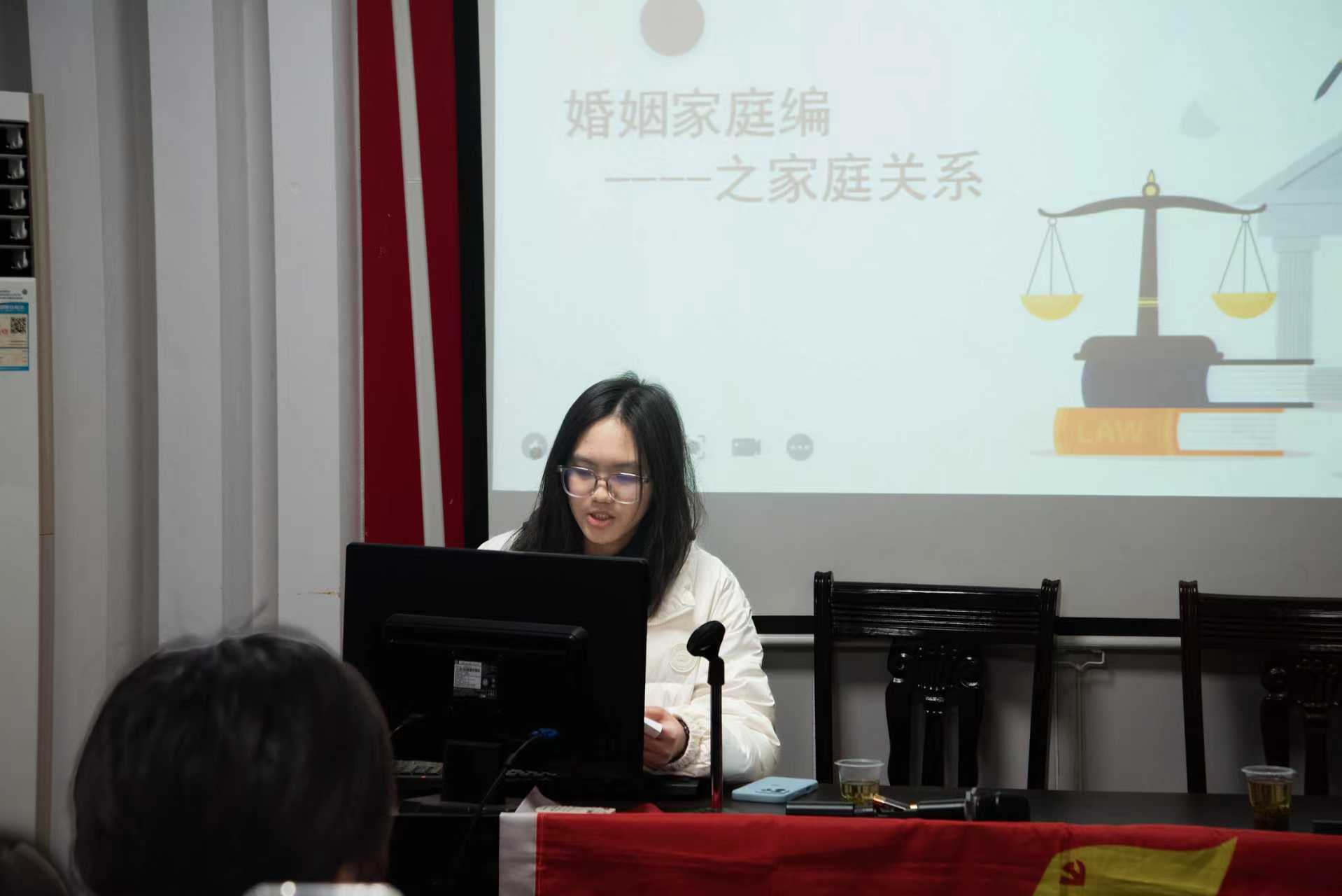 圖為湖南財政經(jīng)濟學院法學與公共管理學院龔梓瀅同學講授《民法典》婚姻家庭編