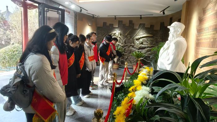 在范筑先烈士故居的紀念區域,團隊成員在烈士相關紀念標識前整齊列隊,集體鞠躬,完成默哀致敬儀式,以莊重的姿態表達對革命先烈的深切緬懷與崇高敬意。