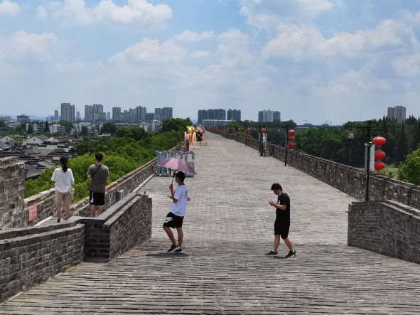 走出南京城墻博物館,邁出歷史的長河,成員們登上了博物館旁的中華門甕城。艷陽似火,蟬鳴不絕,跨越歷史與時間,斑駁的城墻無言地訴說著一切,登上中華城樓,城內風光一覽無余,城墻向兩側綿延而去,將內城緊緊環抱起來。南京明城墻厚重的歷史感,絕非一言可以訴說。