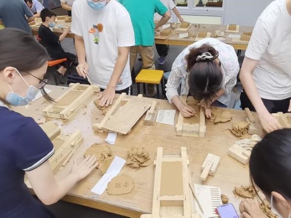 2022年7月20日,小隊又一起前往秦淮·非遺館,體驗了一項趣味橫生的南京明城墻城磚制作活動。在參觀非遺館的過程中,成員們恰逢非遺館的老師帶領一群小朋友們學唱“城門城門幾丈高,三十六丈高……”的童謠,然后細致地向他們講解了南京明城墻豐富多彩的典故,成員們也隨之受益頗多。