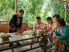(圖片7:實踐團成員體驗拉祜族編制技藝)