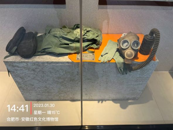 “紅色文化博物館”大門兩側(cè),兩尊栩栩如生的抗日英雄雕塑首先映入眼簾,抗日時期鐵血男兒的事跡也在背后做了詳實的介紹。即便只是兩篇篇幅并不算長的的文章,也足以讓人在那字里行間深刻體會到江淮抗日時期英雄們的熱血精神,敬畏無比。“貫徹二十大 實現(xiàn)強國夢”的橫幅在大門上方迎風飄揚,不僅是和國家站在統(tǒng)一戰(zhàn)線上所喊出的最響亮的口號,也是中國人民對于國家和黨寄托的美好期望。
