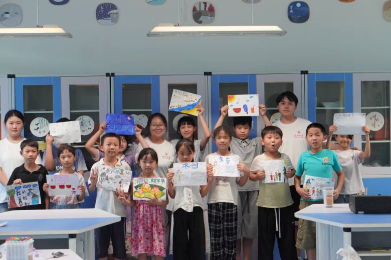 為促進孩子們對知識的運用能力與創造力發展,激發其審美意識,7月3日,外國語學院“合語筑夢”鄉村振興團帶領高店鎮中心學校的小朋友們成功開展英文歌曲學唱、創意手抄報、水彩畫等多種特色課程。