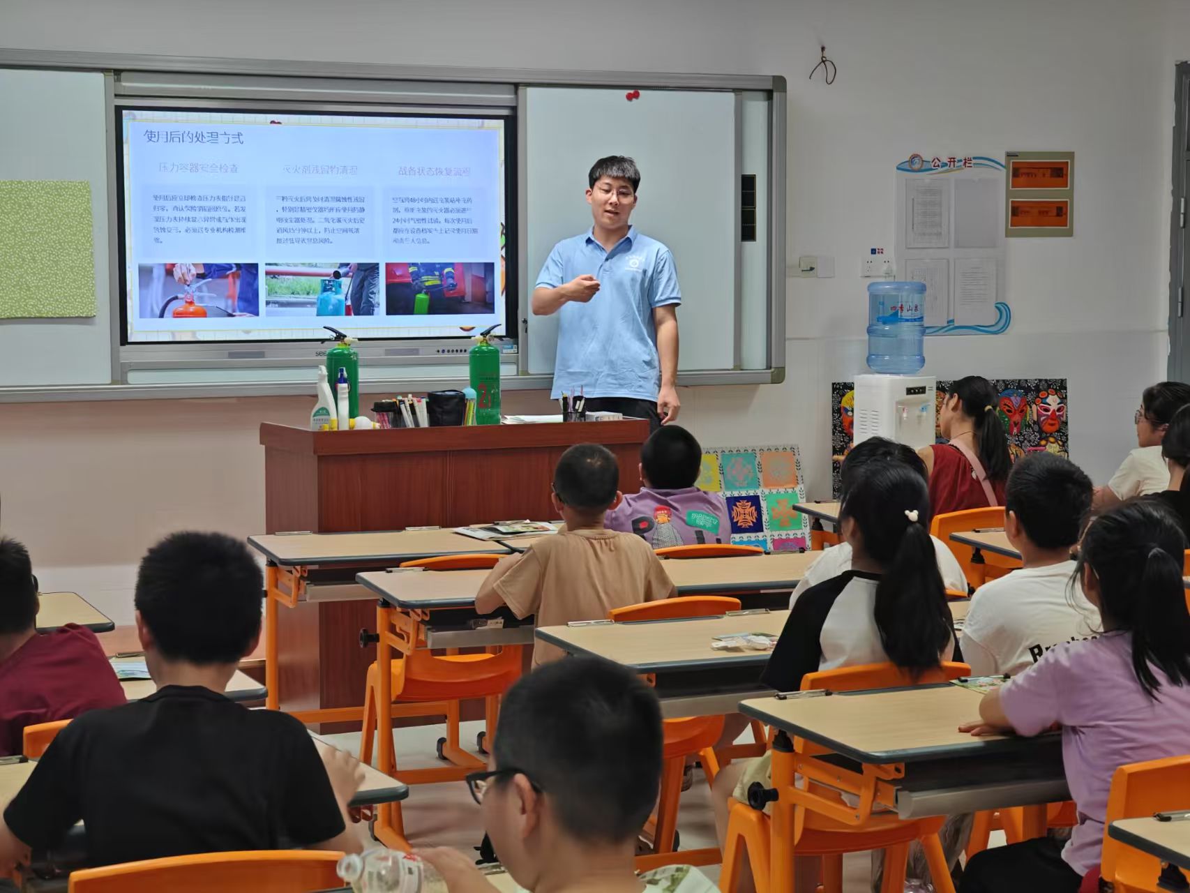 課程內容涵蓋了滅火器的認識與使用、火災逃生與報警等多個方面。志愿者們通過PPT演示、現場演示和互動問答等形式,詳細講解了滅火器的結構原理、使用方法和注意事項。孩子們在輕松愉快的氛圍中,學習到了如何正確使用滅火器,以及在火災發生時如何迅速有效地逃生。