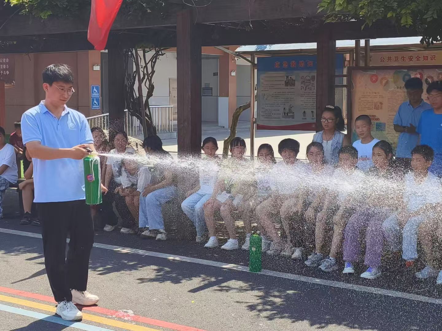在課程的最后,志愿者們組織了一次滅火器使用實操演練。孩子們在志愿者的指導下,親自體驗了滅火器的使用過程。通過實際操作,孩子們不僅掌握了滅火器的使用方法,還增強了面對火災時的自信心和應對能力。