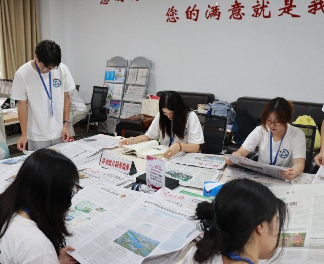 團隊成員查閱相關(guān)報刊資料俞蘇娜供圖