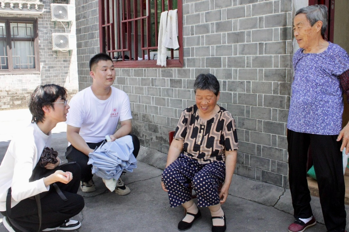 圖為調研組成員在獨山鎮紅軍街與村民訪談。張欣悅 供圖
