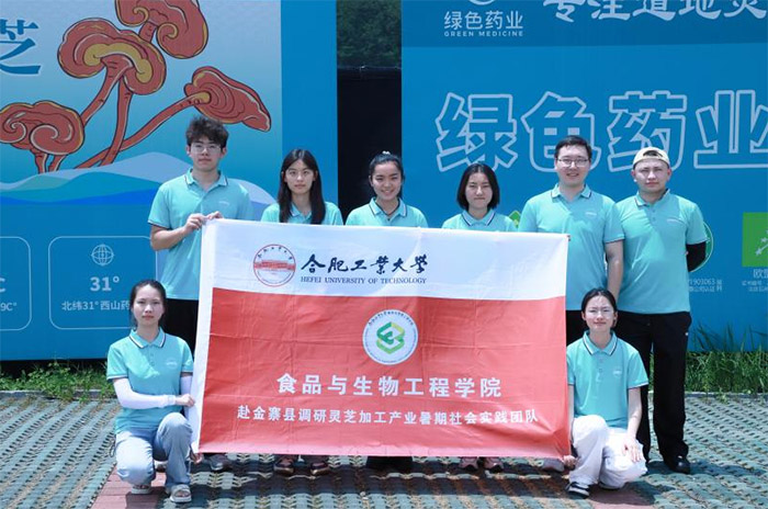 7月5日,合肥工業大學食品與生物工程學院“靈”生江淮、“芝”引振興暑期社會實踐團隊走進金寨縣綠色藥業有限公司開展參觀交流活動,通過實地考察與深度訪談,探尋企業在靈芝加工產業綠色發展道路上的實踐與探索。​