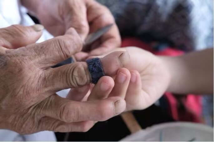 為了更直觀地感受非遺技藝的魅力,服務團成員們在繡娘的指導下,嘗試親手制作苗繡。他們一針一線學習基本針法,從簡單的平針和鎖鏈針開始,體驗苗繡獨特的韻律和耐心。初次拿起繡花針的同學們在操作中雖略顯生疏,卻也在歡聲笑語中體會到了指尖藝術的精妙與工匠精神的堅守。這段體驗讓隊員們更加理解了非遺傳承的不易,也激發了他們探索“非遺與青年”創新保護路徑的熱情。
