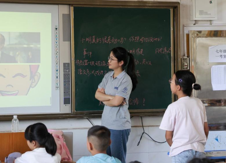 志愿者朱藝菲以《音樂(lè)之聲》為載體,帶領(lǐng)孩子們模仿臺(tái)詞、學(xué)唱英文主題曲,通過(guò)“音樂(lè)+語(yǔ)言”融合教學(xué),鼓勵(lì)孩子們開(kāi)口表達(dá)自我;心理健康課上,志愿者賴(lài)婕妤以“認(rèn)識(shí)自我”為主題,通過(guò)“優(yōu)點(diǎn)盲盒”游戲與情景短劇演繹,引導(dǎo)孩子們挖掘自身價(jià)值,學(xué)會(huì)接納與認(rèn)同自我。