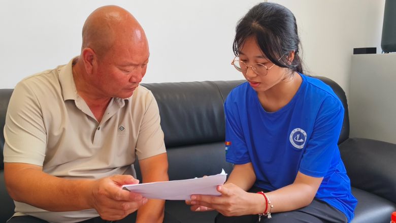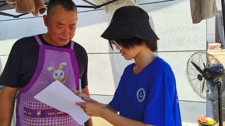 王玉潔同學與當地村民進行問題調查 周夢杰供圖