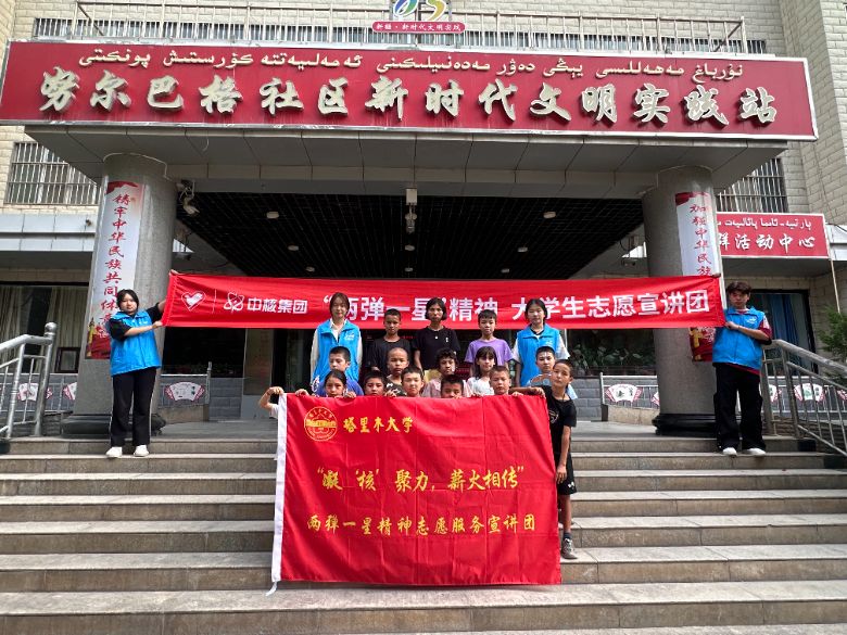 學習“人造太陽”知識,了解“兩彈一星”精神,7月7日,塔里木大學“凝‘核’聚力,薪火相傳”兩彈一星精神志愿服務宣講團在阿克蘇市多浪片區管委會努爾巴格社區開展有關“兩彈一星”精神的宣講,以“兩彈一星”精神為內核,結合“人造太陽”這一內容,用孩子們聽的懂,感興趣的方式,播撒紅色基因與科學夢想的種子。