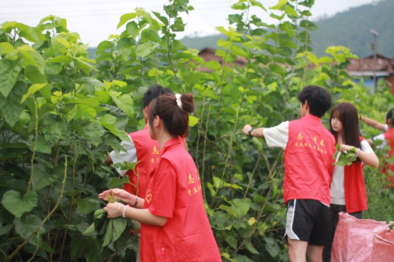 圖為志愿者們采摘桑葉。團(tuán)隊(duì)成員朱佳音供圖