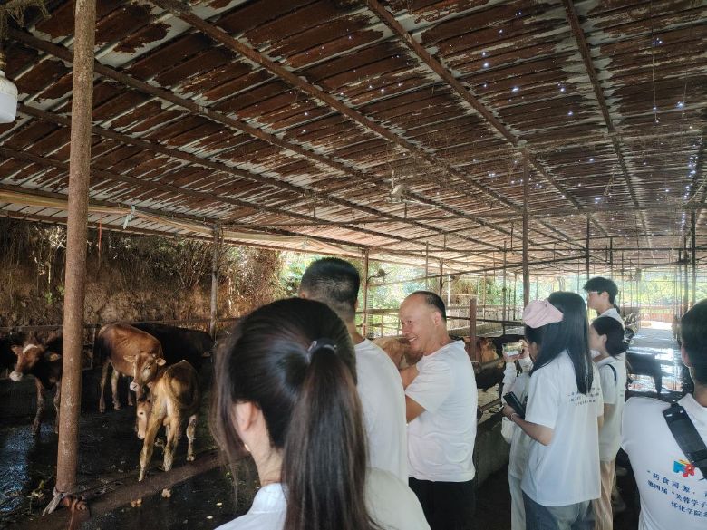 李思老師系湖南農(nóng)業(yè)大學(xué)動(dòng)物營(yíng)養(yǎng)與飼料科學(xué)專業(yè)博士,擁有多年動(dòng)物生產(chǎn)一線工作經(jīng)驗(yàn),在動(dòng)物疫病防控與生產(chǎn)管理方面造詣深厚。楠村村黨支部第一書記熊平其向?qū)嵺`團(tuán)介紹,該公司采用合作社模式運(yùn)營(yíng),現(xiàn)擁有6個(gè)養(yǎng)殖基地,存欄肉牛1000余頭,每年提供靈活就業(yè)崗位70余個(gè),為當(dāng)?shù)匦竽翗I(yè)發(fā)展及鞏固拓展脫貧攻堅(jiān)成果作出了積極貢獻(xiàn)。