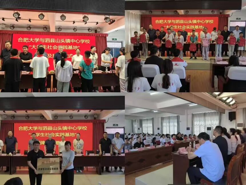捐贈儀式上,合肥大學向當地捐贈了書包、籃球等物資,為孩子們送去了實實在在的關懷。隨后,“合肥大學生社會實踐基地”正式授牌,這一舉措標志著合肥大學與泗縣在實踐育人、校地合作方面邁出了新的步伐,將為后續長期開展社會實踐活動奠定堅實基礎。
