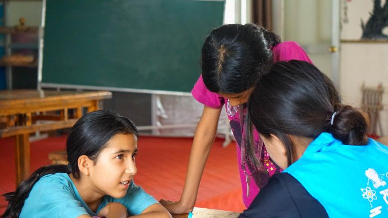 (圖為阿克蘇市友誼社區茶苑內與青少年互動特寫)