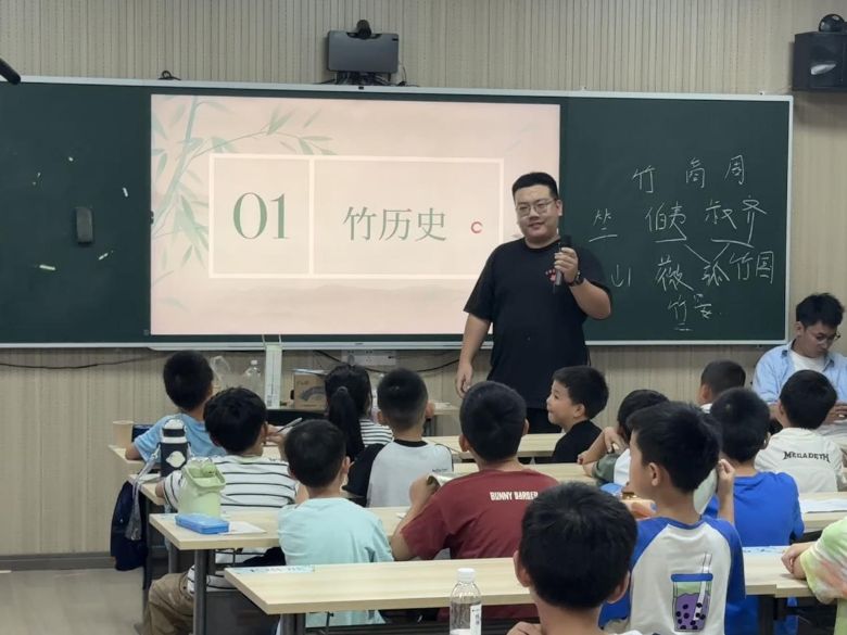 課程伊始,實踐團成員向同學們講述了竹子在中國五千年文明史中的重要地位。從古代的竹簡書到現代的竹工藝品,竹子一直是中華文化不可分割的一部分。成員們通過生動的故事和豐富的圖片資料,展示了竹子在中華民族的歷史中無所不在,讓同學們深刻感受到竹子與中華民族的深厚情感。