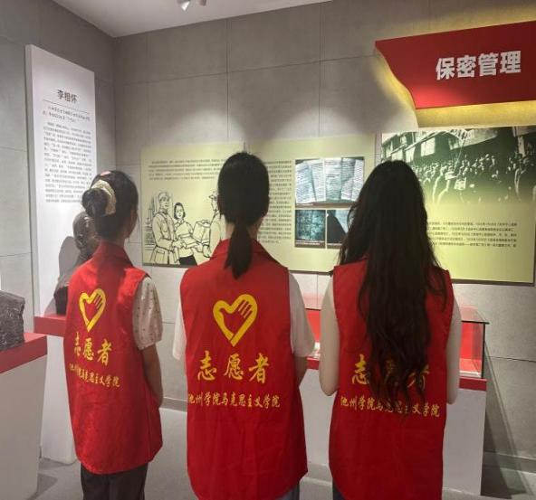在中共黃西工委紀念館,志愿者深入了解保密革命歷史,“保密忠魂”展區中凌霄、黃炳炎、江小妹、李相懷等革命先烈的事跡,更是讓同學們深受觸動。先烈們在極端困難和危險的環境下,用生命詮釋了對黨的忠誠和對革命事業的執著。墻上“保密戰線歷來是必爭、必守、必保之重地,保密工作是一項基礎性、全局性、長期性工作,須臾不可放松”的重要指示,讓同學們進一步認識到保密工作在革命戰爭年代以及和平建設時期的極端重要性。