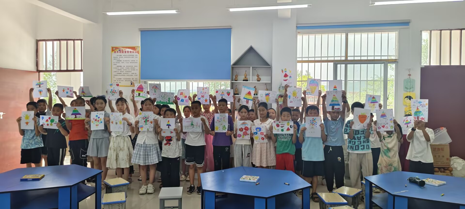 圖為學(xué)生展示自己的繪畫作品 孫雨霞 供圖