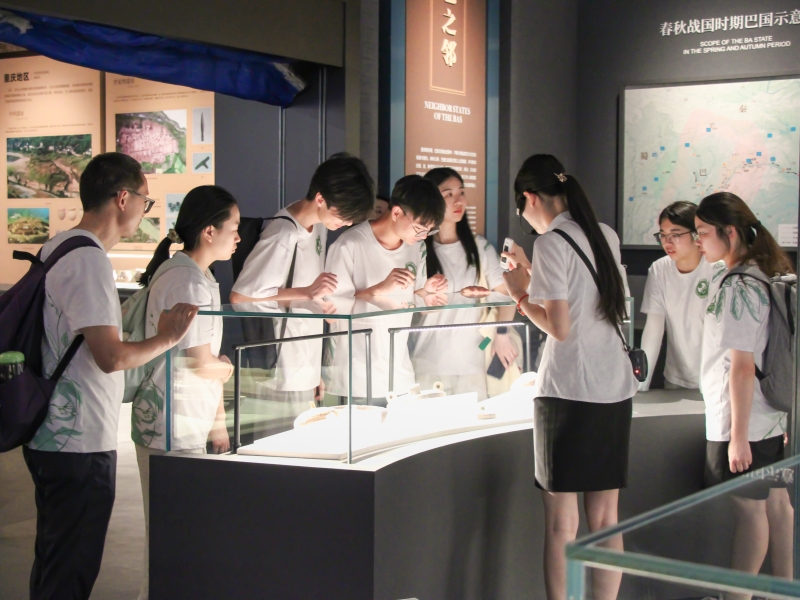 走進展廳,近2000件珍貴文物展現古代巴人壯闊圖景:戰國青銅兵器柳葉劍、鉞、虎鈕錞于,彰顯其驍勇善戰與“漁獵耕戰”的生存智慧;新石器陶罐、紡輪、網墜,描繪先民依山筑城、制陶紡織的生活畫卷。陶器繩紋與刻符,成為解讀巴人精神世界的珍貴線索。隊員們深入感知文物,串聯起背后的文化內涵與社會形態。