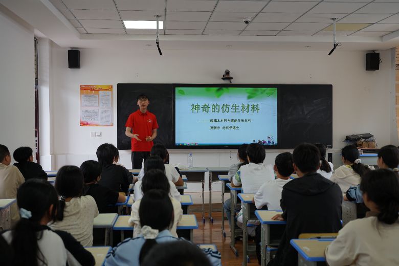 博士王家輝以“秦嶺生態(tài)衛(wèi)士”開(kāi)篇,生動(dòng)揭示材料科技如何守護(hù)綠水青山。屏幕上秦嶺珍稀動(dòng)植物的影像,讓學(xué)生們驚嘆于材料科學(xué)與生態(tài)保護(hù)的神奇融合。