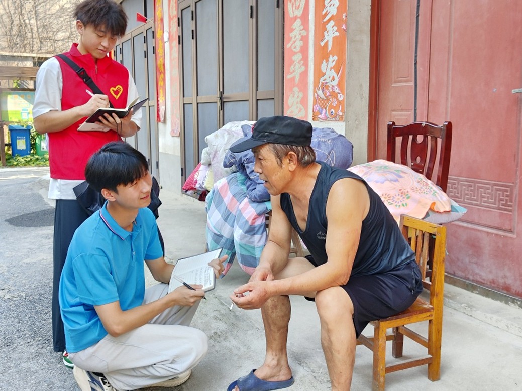 圖為實踐團成員調研當地村民對大學生基層就業工作的認識和了解情況。梁章浩 供圖