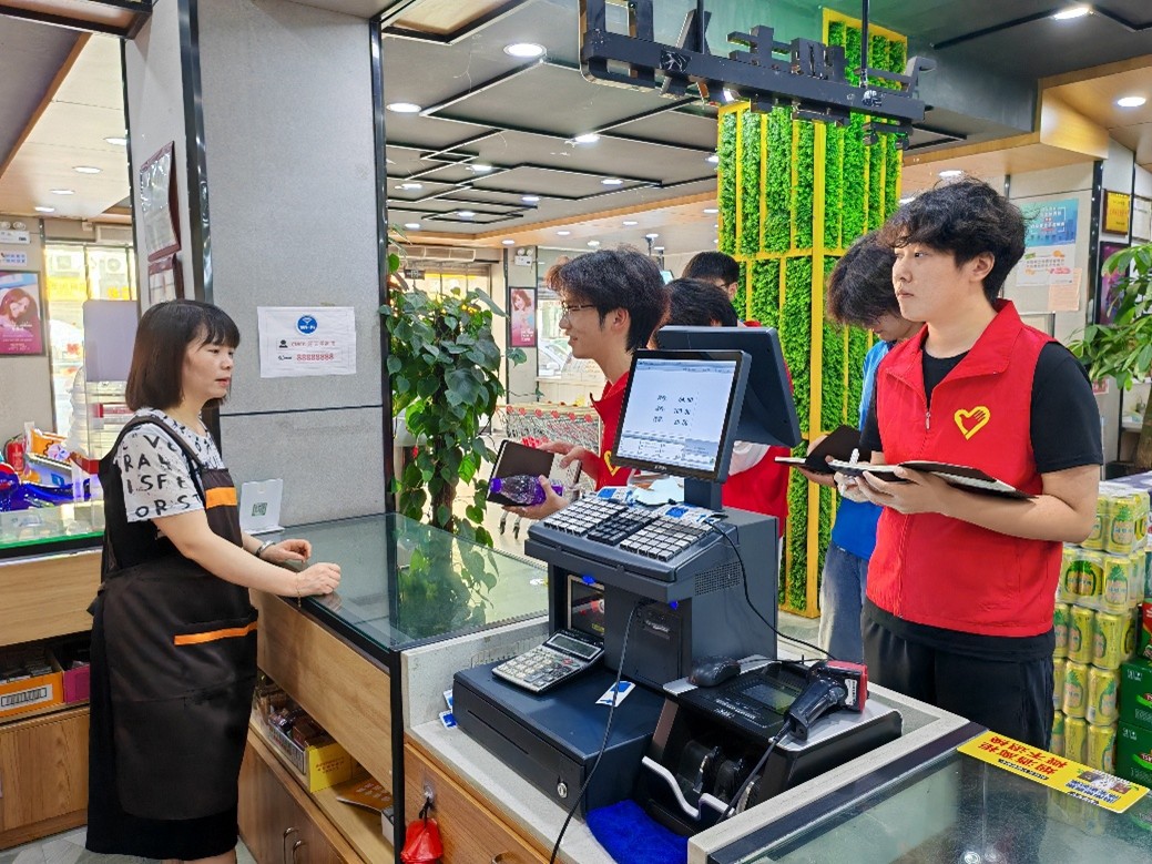 圖為實踐團成員調研當地個體經營戶對大學生基層就業工作的認識和了解情況。梁章浩 供圖