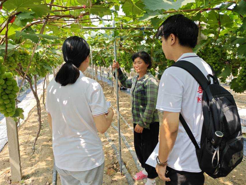 圖為同大鎮葡萄種植農戶與指導老師交談場景 陳一諾 供圖