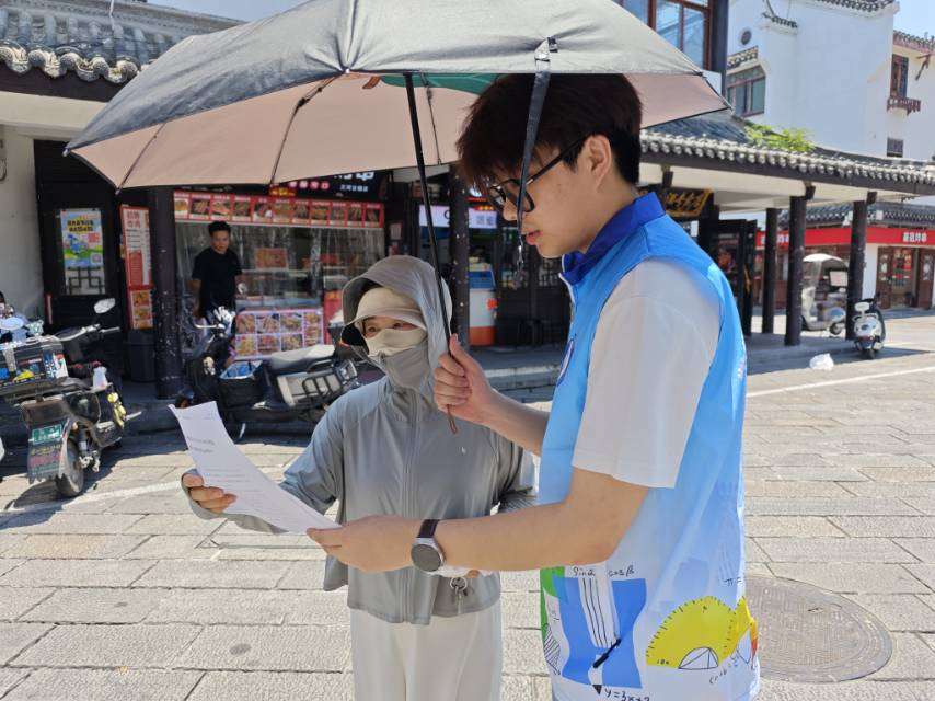 圖為社會實踐調研團成員于三河古鎮發放調查問卷留影 李曉艷 供圖