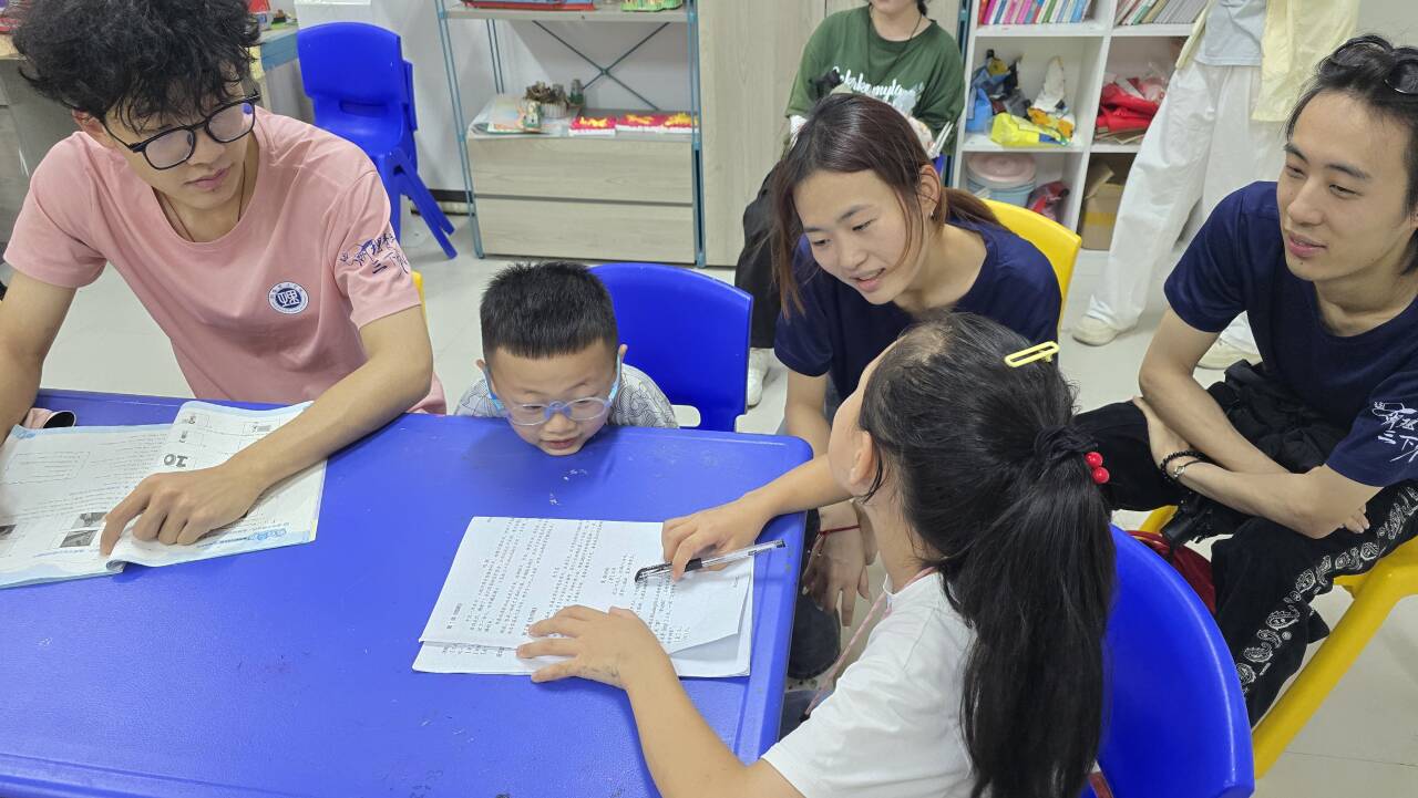 課業輔導解疑難,創意繪畫綻童真 團隊深入學院路社區,精準聚焦鄉村兒童學習痛點。志愿者們化身“學習小導師”,針對數學應用題解析、英語課文理解等具體難題,開展耐心細致的一對一輔導。面對基礎薄弱、理解較慢的孩子,志愿者創新教學方法,選取生活化案例進行分步拆解,通過反復講解與互動引導,直至孩子們豁然開朗、綻放燦爛笑容。