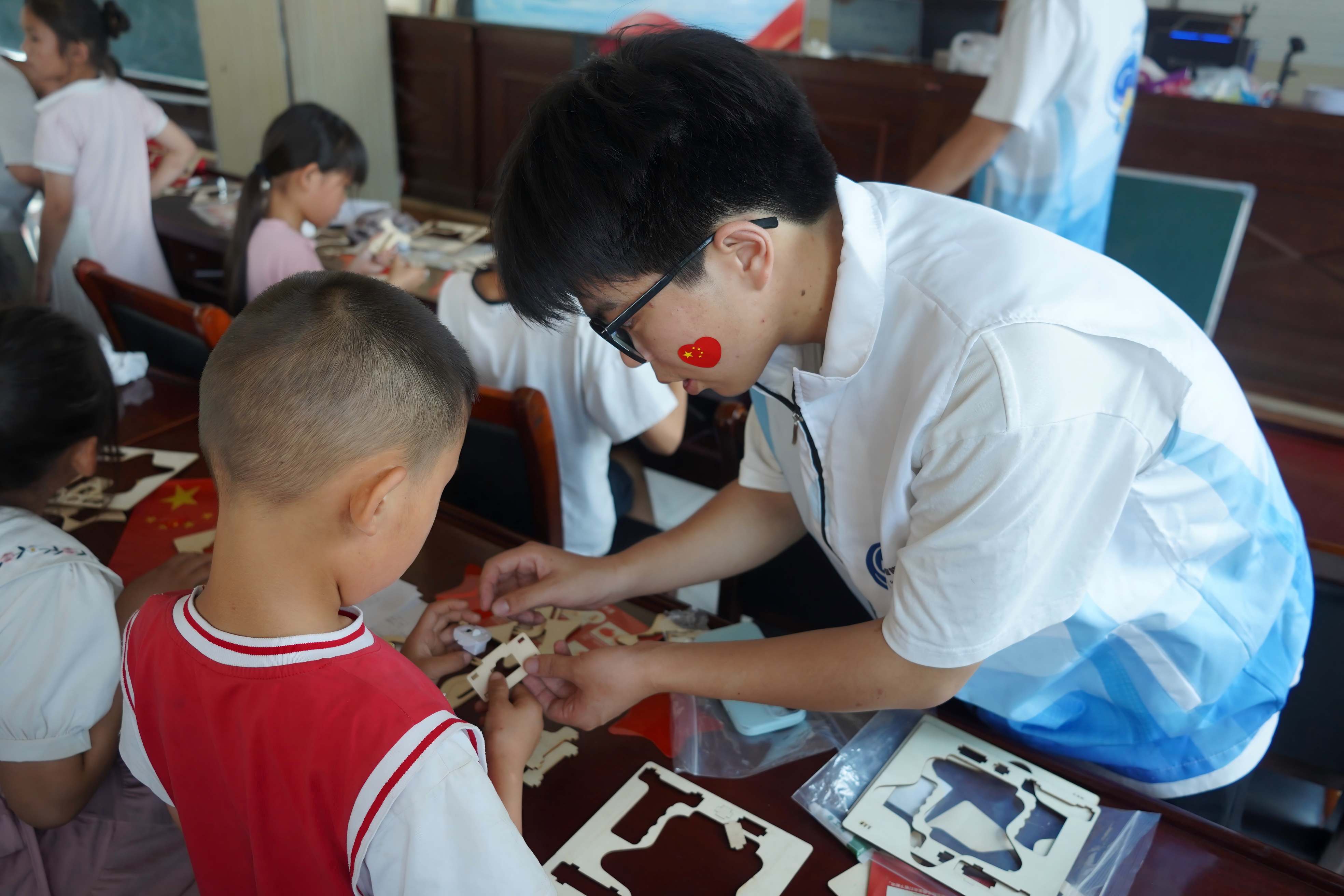 (圖為實踐團成員帶領孩子們制作五角星 張一凡攝)