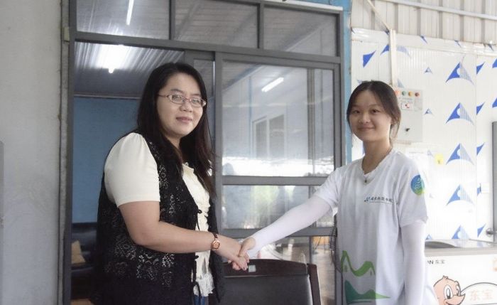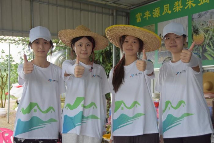 圖為突擊隊隊長與農產品質量檢測中心辦事員的合照(廣東科技學院張鐘寧攝)