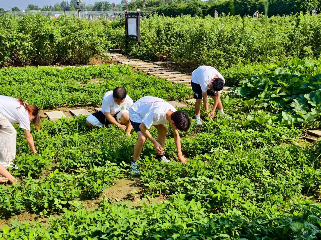 六、勞動實踐:在花生地里讀懂“三化”的落地細節 午后烈日當空,實踐團來到3組的花生試驗田。這片30畝的“川花8號”品種改良田,是晏家壩與四川省農科院合作的成果,預計畝產可比傳統品種增產20%。同學們在村民李大爺的指導下,分組進行除草作業。