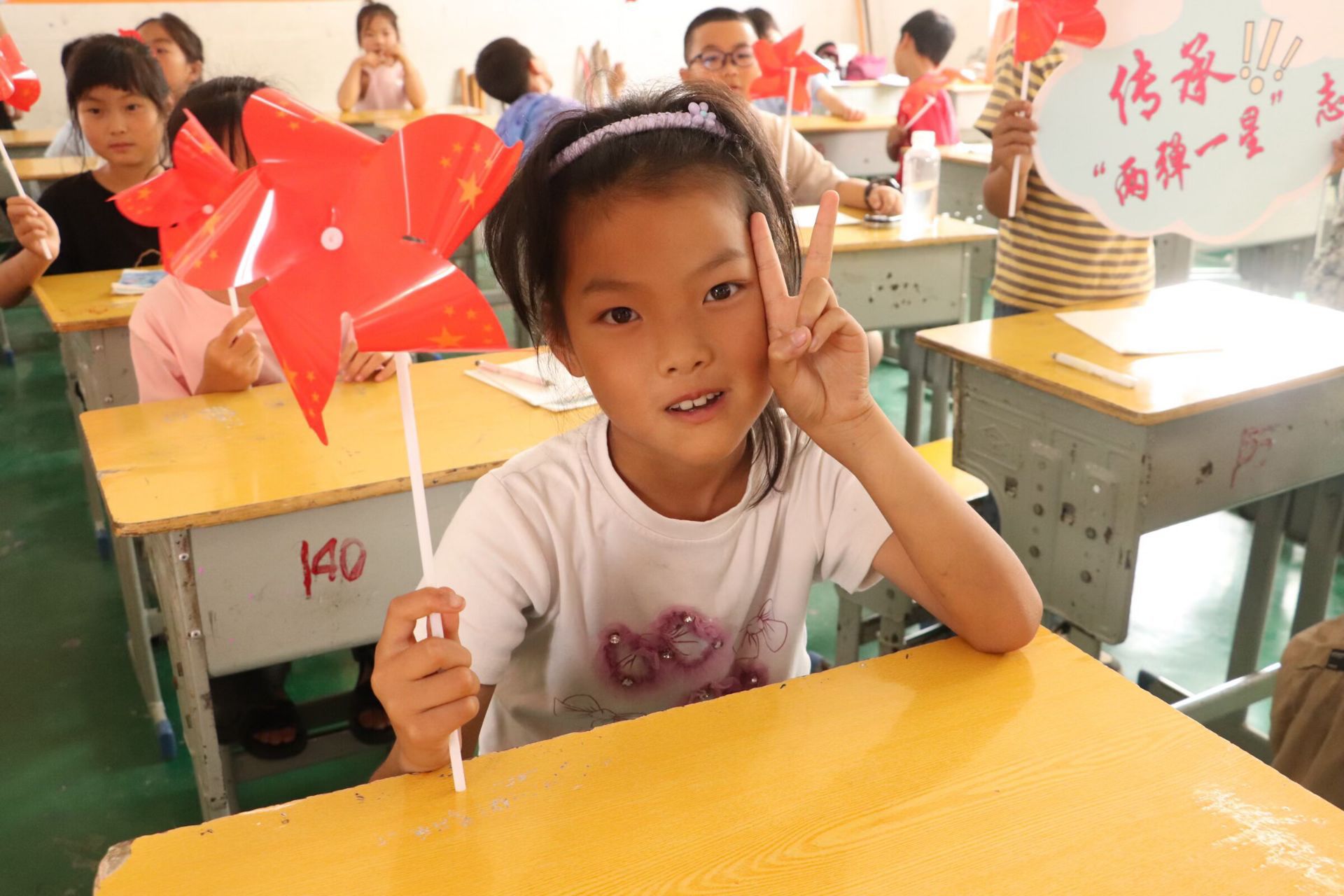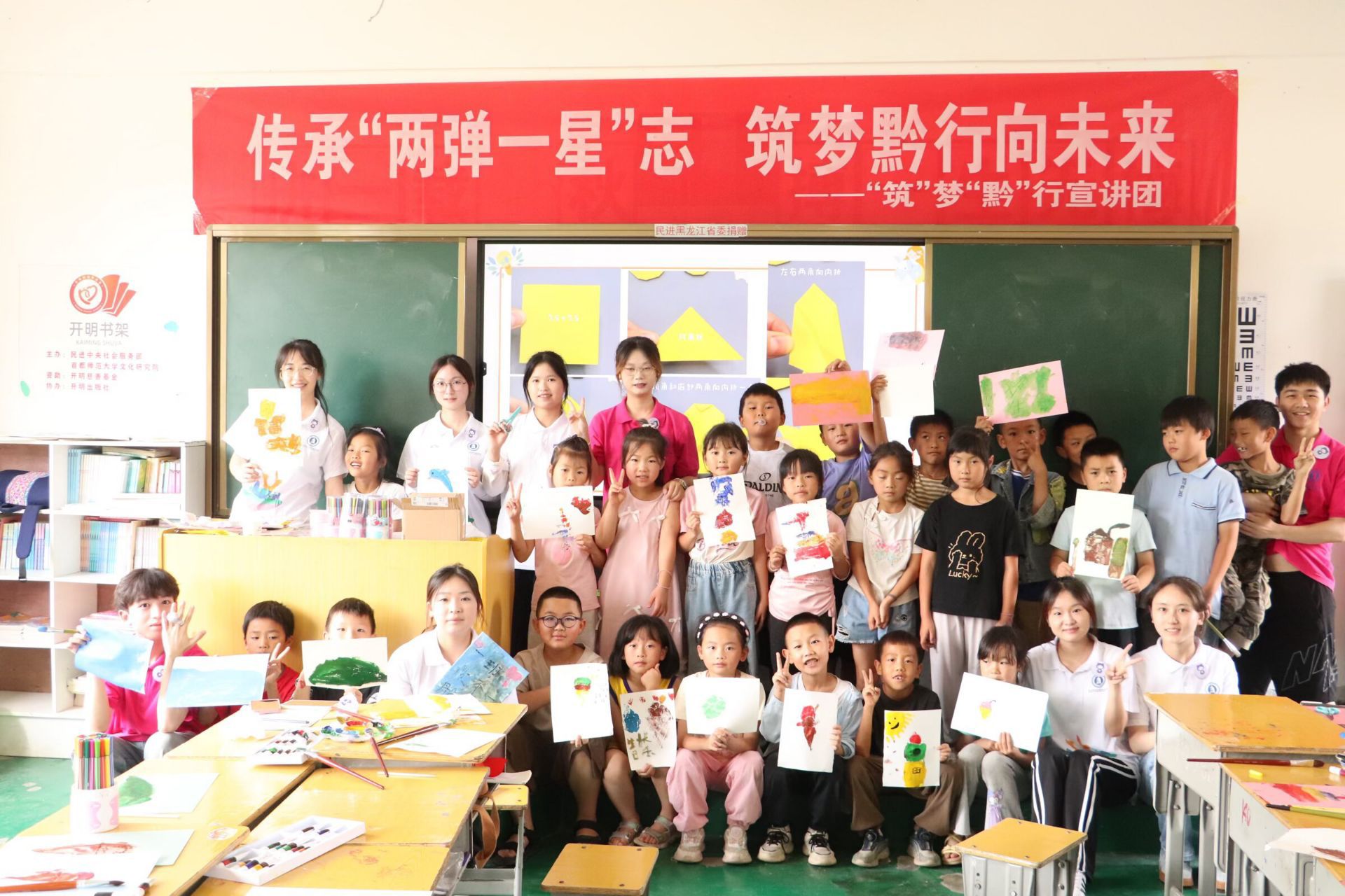 志愿者們帶來“兩彈一星”主題課。生動(dòng)的人物故事、有趣的動(dòng)畫影像搭配風(fēng)車手工,讓孩子們?cè)谌の吨懈惺?ldquo;兩彈一星”精神,愛國情懷悄然萌發(fā)。