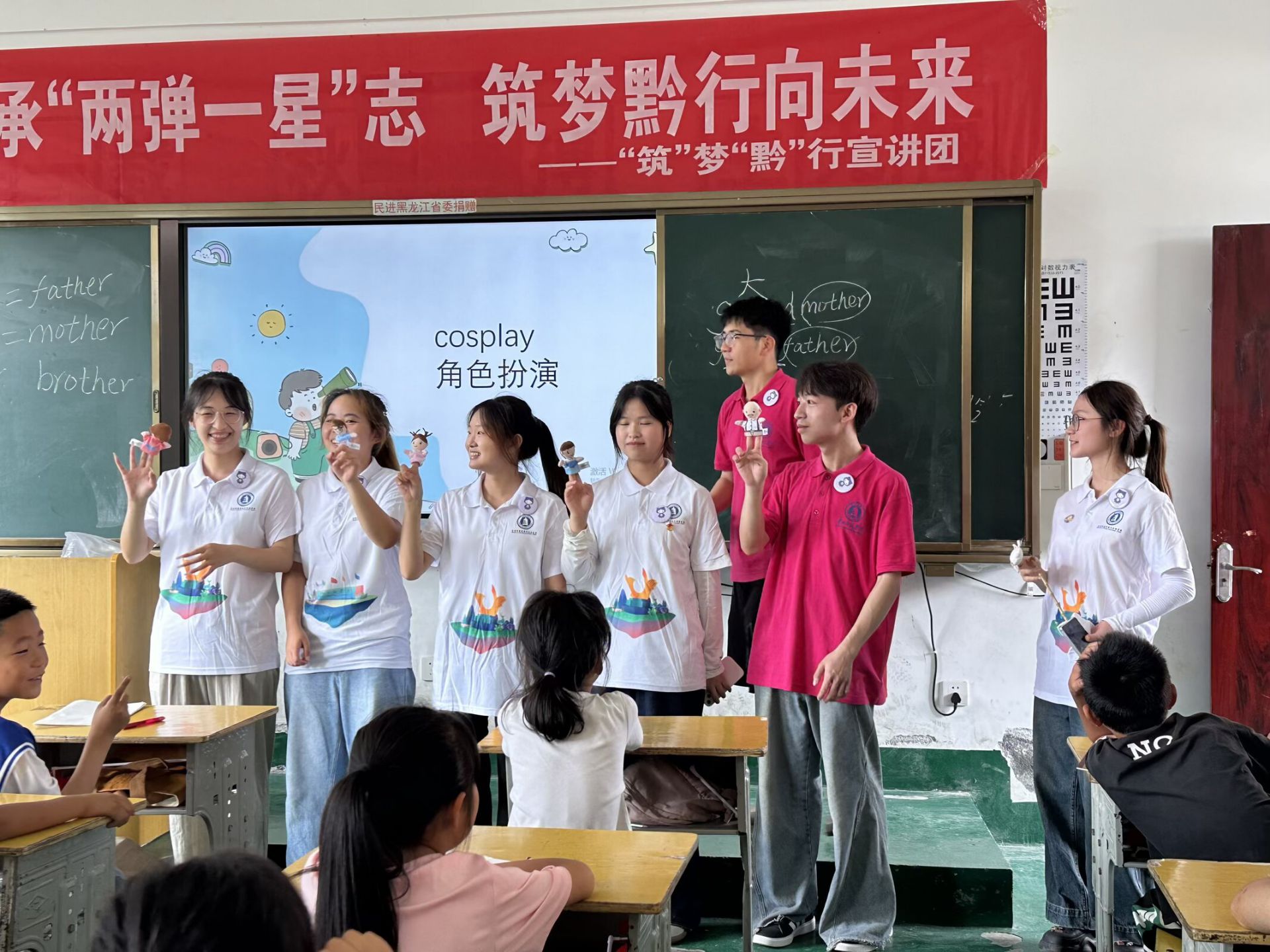 “愛的錨點(diǎn):My family”課程里,志愿者用“family tree”引入,結(jié)合角色扮演教孩子們家庭成員的英語表達(dá),課堂溫情又有趣。