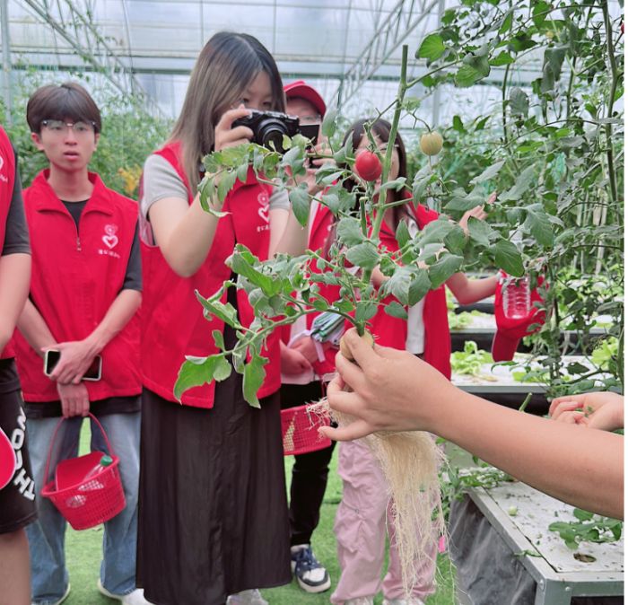 負責人為隊員展示無土栽培小番茄(攝影:王卓)